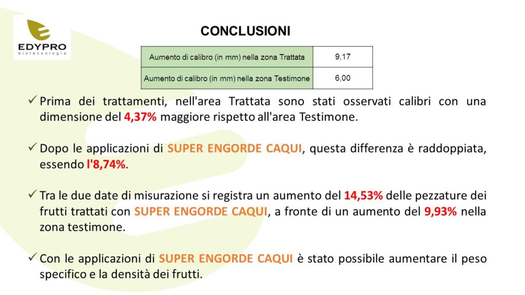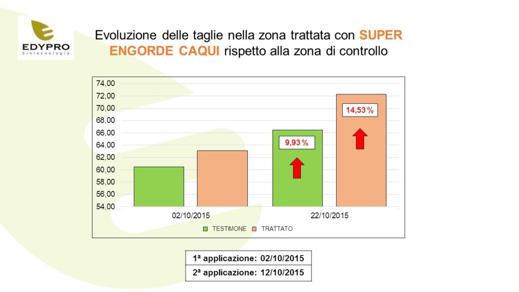 Questo bioprocesso riesce ad aumentare notevolmente il calibro dei frutti e ad aumentare in modo molto pronunciato il calibro medio dei frutti del campo.
