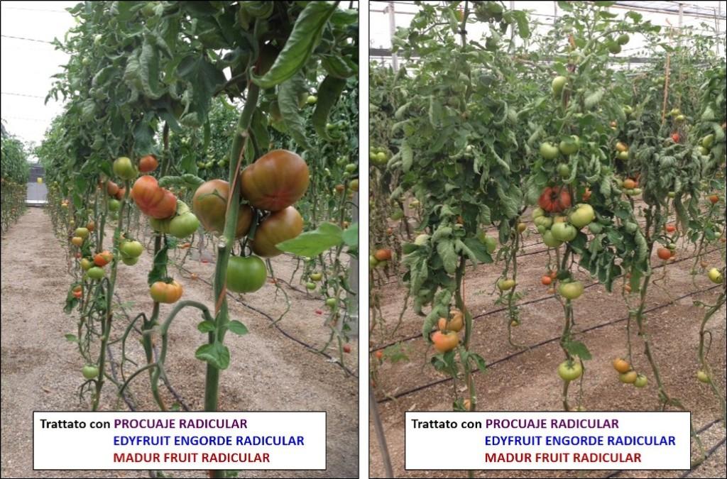 Di seguito, mostriamo alcune immagini di due diverse varietà di pomodoro, Varietà Bernal e Byelsa, entrambe trattate con i prodotti biotecnologici EDYPRO: