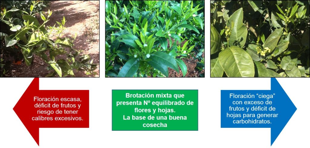 En estos momentos ya podemos ver cómo está siendo la brotación en cítricos y sobre esta vamos a tomar decisiones para corregir la situación si el pronóstico es desfavorable.